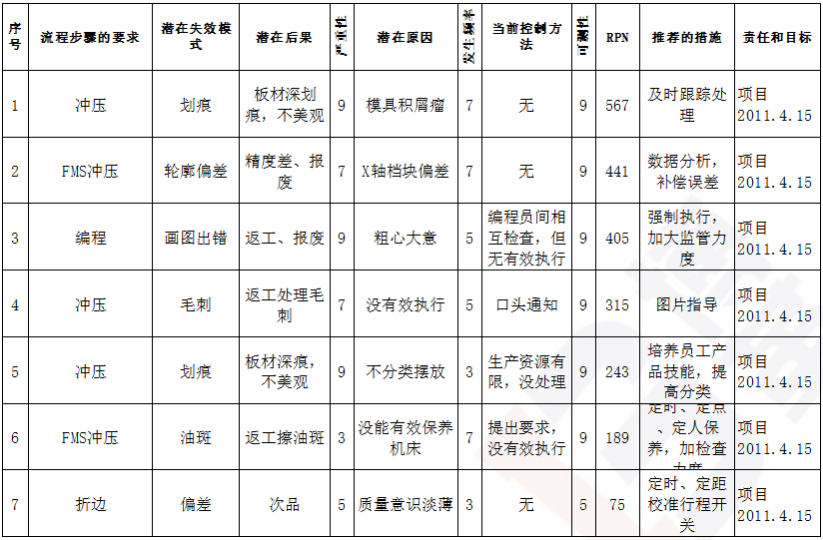 (8)FMEA潛在失效模式分析