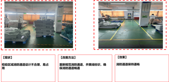 隨后,對所有物品實施“三定”管理:定置(確定存放位置)、定容(明確容器和容量)、定標示(標識清晰易辨)。通過系統整頓,不僅優化了工作流程,還大幅提高了物料和工具的取用效率。全員積極參與改善活動,累計完成現場改善500項,包括工具擺放合理化、通道暢通化、區域功能明確化等,為后續6S深化打下了堅實基礎。